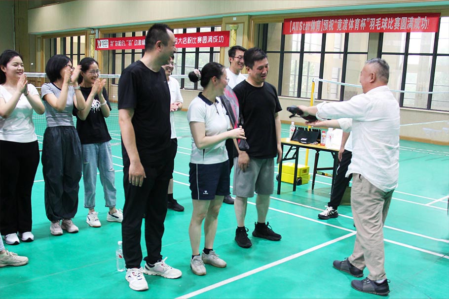 经过多轮激烈角逐,冠亚军相继产生,公司领导为获奖队伍颁发比赛奖品。此次羽毛球双打团建赛,既是一场体力与技巧的较量,更是一次团队凝聚力的深度淬炼,未来,公司将持续开展多元化文体活动,让“健康工作,快乐生活”的理念融入日常,激励全体员工以更饱满的热情投入工作,携手迈向新征程。